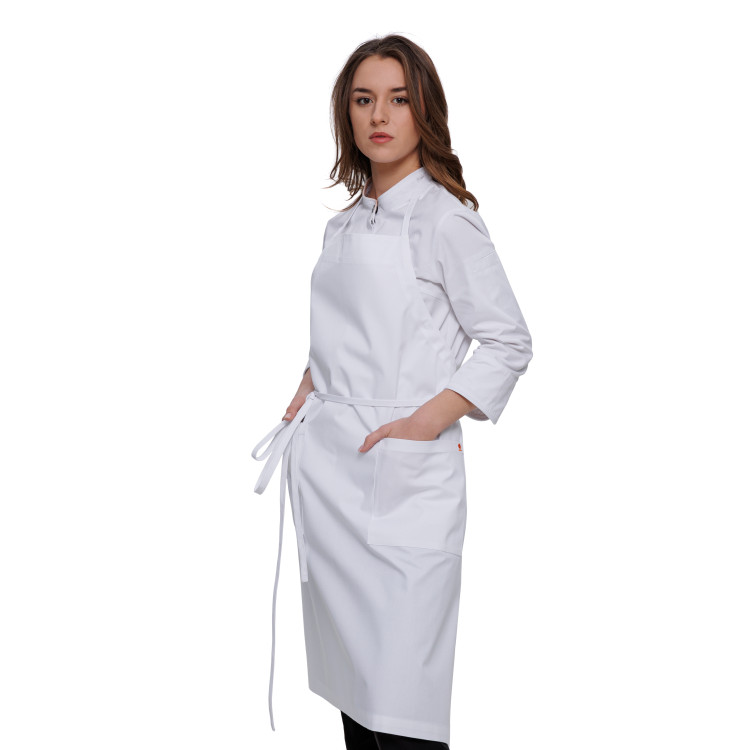 • Zástěra s laclem, délka ke kolenům